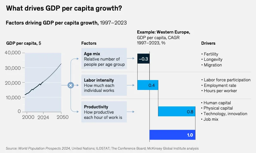 Por que é que isto importa para os investidores? Simples. Todo o nosso sistema económico – previsões de negócios, orçamentos governamentais, retornos de investimento – baseia-se no crescimento da população. Mais pessoas sempre significaram mais consumidores, mais produção, mais PIB. Era praticamente automático. Mas agora a máquina de fazer bebés avariou, e o crescimento da população não é um dado adquirido – acabou. Se a produtividade não disparar, o crescimento estagna. E sem crescimento, a economia deixa de ser um jogo de soma positiva onde todos podem ganhar. De repente, é soma zero: o meu ganho torna-se a sua perda.